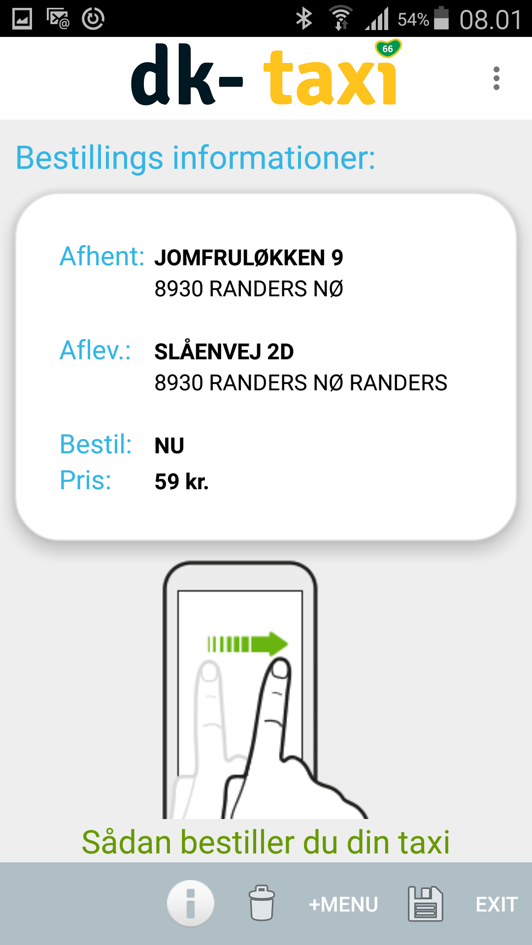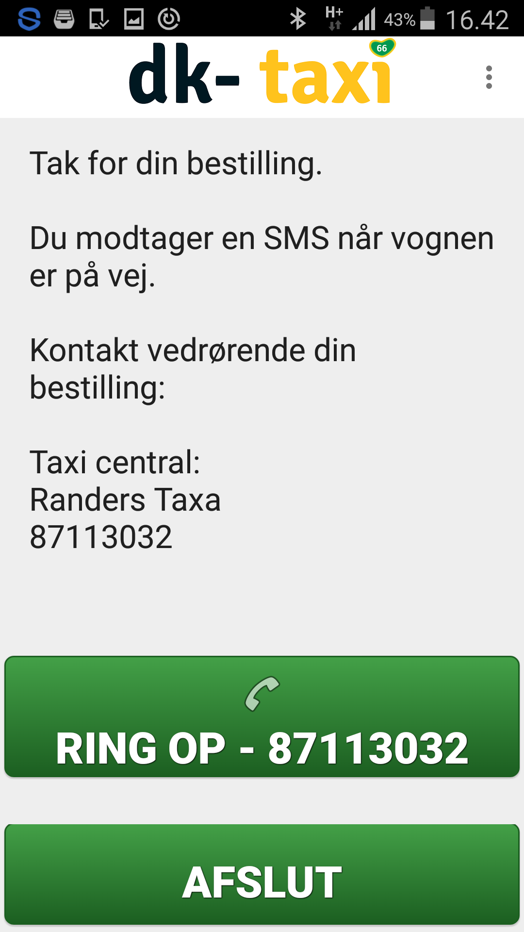 Spring telefon køen over, med dk-taxi's bestillings app, som er din genvej til hurtig taxi bestilling i Danmark.dk-taxi er opdelt i 2 bestillings niveauer, hvor den ene er en direkte on-line taxi bestilling og hvis ikke det lader sig gøre på din bestillings adresse, tilbydes du et hurtig telefonkald til nærmeste taxi leverandør. - Med dk-taxi skal du ikke registrere dit kreditkort i vores app. Du betaler selv direkte til taxi leverandøren, når du har kørt din bestilte tur. - Med dk-taxi kan du angive en hente og leverings adresse. Dette kan gøres ved brug af et oversigts kort der viser hvor du befinder dig. Alternativt kan du lave manuel vej indtastning eller benytte hurtig opslag i dine personligt gemte favorit adresser.